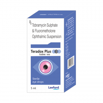| DESCRIPTION: | Teradox Plus eye drops contain Tobramycin, an aminoglycoside antibiotic that acts by killing the infection causing bacteria & Fluorometholone, a corticosteroid that reduces redness, allergy & swelling in eyes. It is prescribed for general & post-surgical infections of the eye, associated with inflammation. |