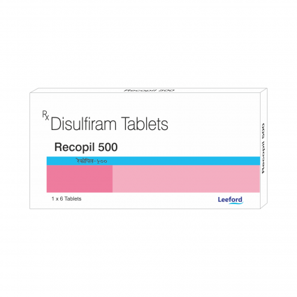 | DESCRIPTION: | Recopil 500 tablets contains Disulfiram, a medication used in the treatment of chronic alcoholism. It works by discouraging alcohol consumption. Recopil 500 works by causing unpleasant reactions such as nausea and flushing when alcohol is consumed thus helping to reinforce abstinence. This medication is part of a comprehensive treatment plan and should only be used under medical supervision. |