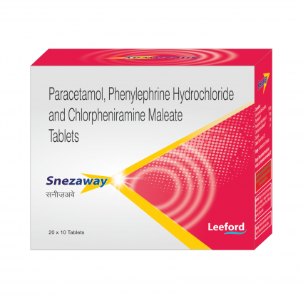 | DESCRIPTION: | Snezway tablet contains Paracetamol an analgesic and antipyretic, Phenylephrine a decongestant and Chlorpheniramine, an antihistamine. It is used for the symptomatic relief of cold, flu, and allergy symptoms such as pain, fever, nasal congestion, sneezing, and runny nose. |