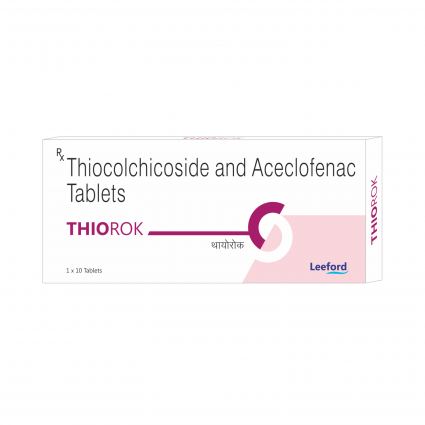 | DESCRIPTION: | Thiorok Tablet is a combination of skeletal muscle-relaxant drug Thiocolchicoside & NSAID Acecloclofenac used in the treatment of orthopedic, traumatic and rheumatologic disorders. It is indicated for painful muscle spasms, neck & shoulder Pain, sciatica, degenerative vertebral disorders, ankylosing spondylitis, for adults and adolescents 16 years of age and older. |