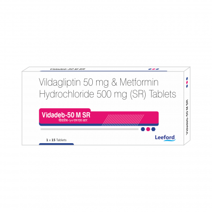 | DESCRIPTION: | Vidadeb-50 M SR tablet contains Vildagliptin, a new class of anti-diabetics that acts on the intestinal enzyme to control diabetes & Metformin that acts by increases absorption of sugar from blood to muscles. It is prescribed in adjunct to diet control & exercise to control type II diabetes. |