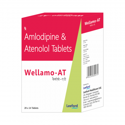 | DESCRIPTION: | Wellamo-AT tablets contain Atenolol, a beta blocker that acts by reducing the rate of heart & Amlodipine, a calcium channel blocker that reduces the force with which heart pumps. It is prescribed to lower blood pressure, heart pain & other cardiac conditions. |