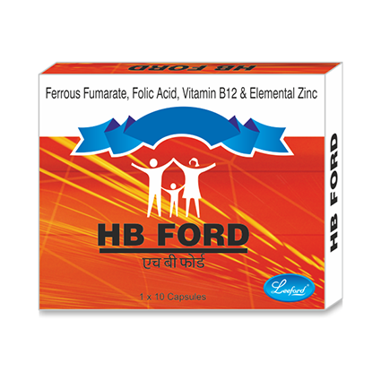 DESCRIPTION: | HBford Capsule contains Ferrous Fumarate in combination with folic, Vitamin B12 and Folic acid and Zinc. HBford Capsule is indicated for iron deficiency anaemia, malabsorption syndrome, pregnancy and lactation and in major blood loss. |
