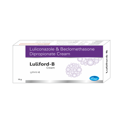 DESCRIPTION: | Luliford-B cream contains Luliconazole, an antifungal drug that act by killing the infection causing fungus on the skin & Beclomethasone, a corticosteroid that relieves itching, redness, irritation & swelling. It is prescribed for Tinea (a fungus) infection of head, beard, chest and back, fingers and other skin area of the body for Candida (fungus) infection of skin called candidiasis etc. where there is associated inflammation and itching. |