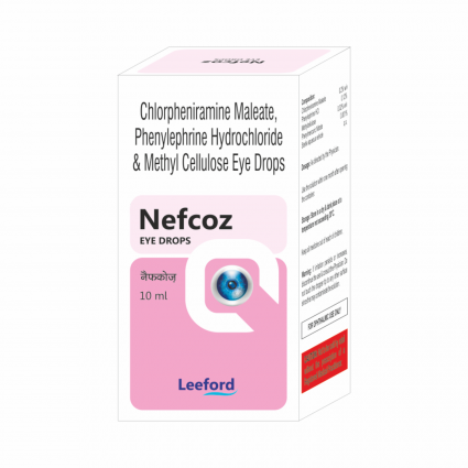 | DESCRIPTION: | Nefcoz eye drops contain actives that constricts eye's blood vessels, soothes & cools eye so as to decongests them, relives pain, redness, irritation, watery eyes besides soothing and clearing them (if something gets into eyes). It is prescribed for relief of the minor eye symptoms of itching and redness caused by dust, smoke, sun glare, ragweed, pollen, grass, animal hair and dander & controlling severe redness of eyes resulting from bacterial & allergic conditions. |