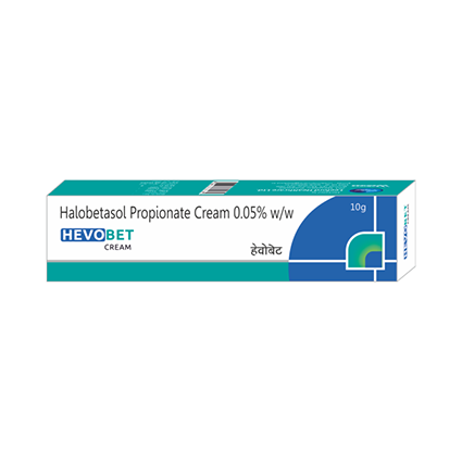 | DESCRIPTION: | Hevobet cream contains Halobetasol, a very high potency corticosteroid that acts by reducing redness, swelling, itching and constricting blood vessels. It is prescribed to reduce swelling, redness and itching in steroid responsive skin conditions with wide variety of causes. |