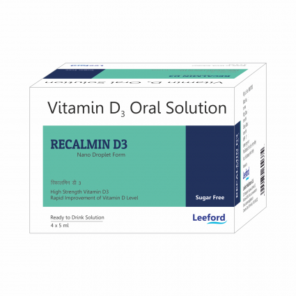 | DESCRIPTION: | Recalmin D3 nano shots contains Cholecalciferol which is the best form of Vitamin D in nano droplets form for better absorption. It helps your body to absorb Calcium. Recalmin D3 are indicated in the prevention and treatment of Vitamin D deficiency. It is also used in Ostomalacia, Rickets, Cardiovascular risk reduction, Diabetes, Osteoporosis, Pregnancy and Cancer prevention. |