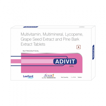 | DESCRIPTION: | Adivit Tablet contains Pine Bark extracts, Lycopene & Grape Seed Extract with essential vitamins and minerals for antioxidant support, general health and wellbeing as well as maintenance of good health. Adivit Tablet is indicated for pregnancy and in the post-natal period for both lactating and non-lactating mothers, cardiovascular disorders, diabetes and chronic diseases. |