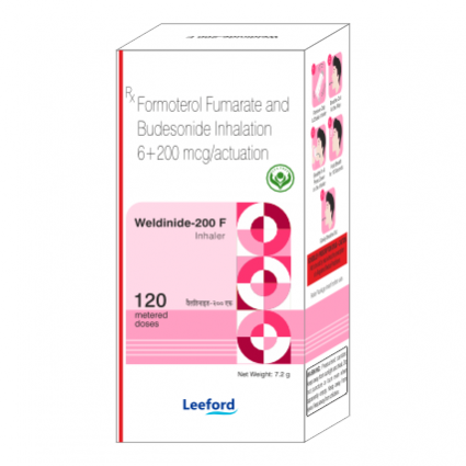 Weldinide-200 F inhaler contains combination medication Budesonide and Formoterol, which is used to manage asthma and chronic obstructive pulmonary disease (COPD). Budesonide is a corticosteroid that reduces inflammation, while Formoterol is a long-acting bronchodilator that relaxes airway muscles. Together, they help prevent asthma attacks, improve lung function and control symptoms. This inhaler is used regularly for long-term management, but not for immediate relief of acute breathing difficulties. |