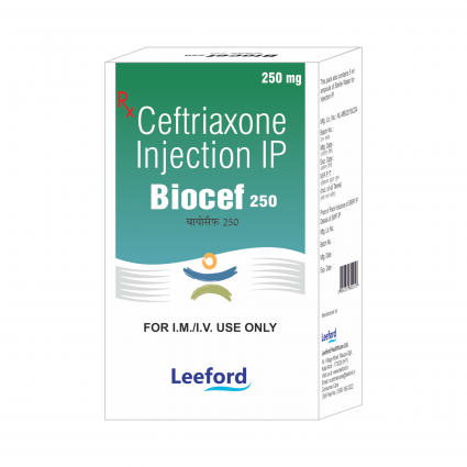 | DESCRIPTION: | Biocef injections contain Ceftriaxone, a third generation cephalosporin that acts via breaking the cell wall of the bacteria. It is prescribed as a first line of defense in majority of the cases requiring injections. |