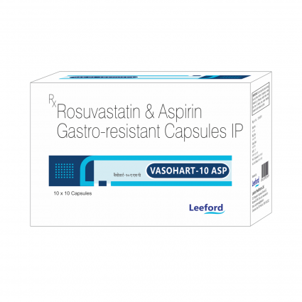 | DESCRIPTION: | Vasohart ASP capsules contain Rosuvastatin, a statin group of drug that acts by reducing various fats (lipids) level in blood & Aspirin, a blood thinner. It is prescribed to patients of cardiovascular & neurovascular diseases as well as all diabetics to prevent heart pain, heart attack, stroke & other cardiovascular risk. |