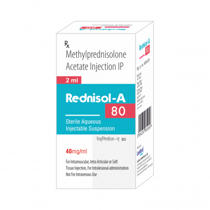 | DESCRIPTION: | Rednisol-A 80 contains Methylprednisolone acetate an anti- inflammatory corticosteroid used to treat pain and swelling that occurs with arthritis and other joint disorders. It may also be used to treat conditions such as blood disorders, severe allergic reactions, certain cancers, eye conditions, skin/intestinal/kidney/lung diseases, and immune system disorders. |