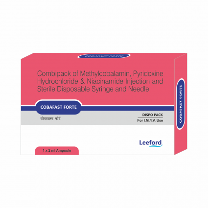 | DESCRIPTION: | Cobafast Plus/Forte injection contains Methylcobalamin (bioactive form of Vitamin B12), Niacinamide (Vitamin B3) and Pyridoxine (Vitamin B6). This combination has synergestic effect on damaged nerves in diabetic neuropathy and peripheral neuropathy. It is indicated to reduce the risk of hyperhomocysteinemia and resulting risks of atherosclerosis, cardiovascular and diabetic disorders. |