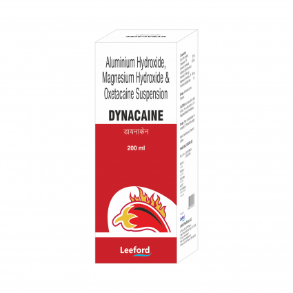 | DESCRIPTION: | Dynacaine gel contains Antacids (Aluminium hydroxide & Magnesium hydroxide) and Oxetacaine (Analgesic & anesthetic). It relieves symptoms of Peptic ulcer, gastritis, inflammation of food pipe, hiatus hernia and other dyspeptic conditions associated with hyperacidity. |