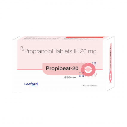 | DESCRIPTION: | Propibeat-20 is our brand of Propranolol, a beta blocker that acts by reducing the number of times the heart beats in a minute and thus reduces heart rate, blood pressure, and strain on the heart. Propibeat is used to treat high blood pressure, Arrhythmia (irregular heartbeats), shaking (tremors), migraine, angina and is used after a heart attack to improve the chance of survival from cardiovascular complication. |