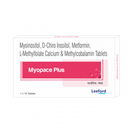 | DESCRIPTION: | Myopace Plus tablets is a combination of Myo-Inositol, D-Chiro-Inositol, Metformin, L-Methylfolate, Calcium and Mecobalamin used to support metabolic and hormonal balance. Myo-Inositol and D-Chiro-Inositol help regulate insulin sensitivity while Metformin improves glucose control, L-Methylfolate supports healthy cell function, Calcium strengthens bones, and Mecobalamin aids nerve health. Myopace Plus tablets are often used in managing conditions like polycystic ovary syndrome (PCOS) and diabetes. |