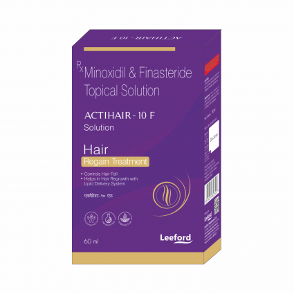 | DESCRIPTION: | Actihair- 10 F solution contains Minoxidil, a vasodilator that helps hair growth by increasing hair shaft diameter and by inducing its growth & Finasteride, stops the shortening of hair follicle and thus supports hair growth. It is prescribed to help hair growth in the treatment of male pattern baldness (from centre of head). |