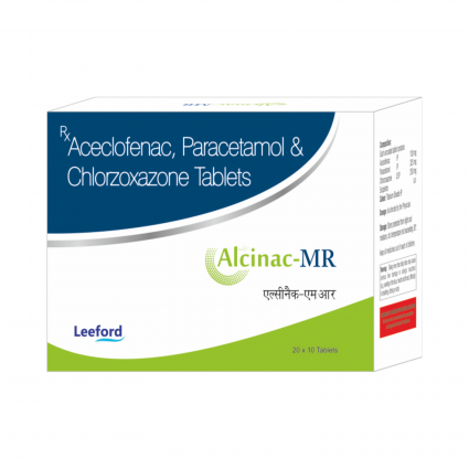 | DESCRIPTION: | Alcinac-MR Tablet contains Aceclofenac (a NSAID), Chlorzoxazone (a muscle relaxant) and Paracetamol (an analgesic and antipyretic) that is used to relieve pain and inflammation in conditions that affect muscles. Alcinac-MR effectively relieves muscle stiffness or spasm, thereby improving muscle movement. It is indicated in low back pain, acute muscle spasms, muscle spasms associated with spondylosis, muscular cramping & traumatic injuries. |