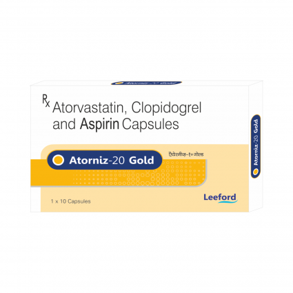 | DESCRIPTION: | Atorniz-20 Gold capsule contains Atorvastatin, a statin that lowers the blood fat levels; Clopidogrel & Aspirin, both are blood thinner that avoids blood coagulation. It is prescribed in established heart, brain & blood vessels diseases. Besides it is also used after stenting and to reduce the risk of heart, brain & blood vessels diseases in diabetes & other high risk individuals. |