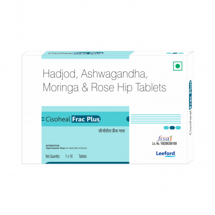 | DESCRIPTION: | Cisoheal Frac Plus tablet contains Cissus quadrangularis (Hadjor), Withania somnifera (Ashwagandha), Moringa oleifera (Sehjan) & Rose Hip extract. Cisojoint Plus accelerates the fracture healing and bone strengthening. It increases bone strength & eases joint inflammation. It is also prescribed to treat Arthritis & heals damaged bones. Cisojoint Plus tablets also regulate menstrual cycle in females. |