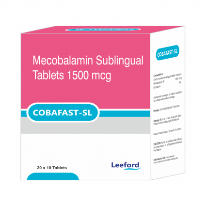 | DESCRIPTION: | Cobafast sublingual tablet (meant to be taken under your tongue or between your cheek and gums), contains Methylcobalamin (bioactive form of Vitamin B12). Methylcobalamin is important for the brain and nerves, and for the production of red blood cells. It is indicated in Vitamin B12 deficiency, Pernicious anaemia, diabetic neuropathy, peripheral neuropathy, cardiovascular disorders, hyperhomocysteinemia, Alzheimer disease and degenerative disorders. |