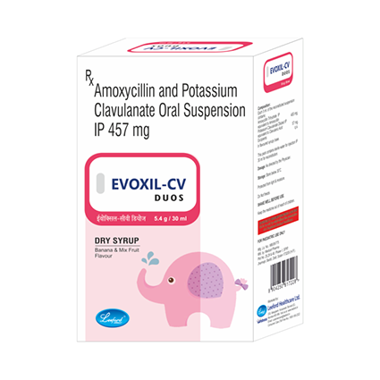| DESCRIPTION: | EVOXIL-CV tablet, dispersible tablet, injection & dry syrup are combination of Amoxycillin, a Penicillin antibiotic with Clavulanic acid, a beta-lactam inhibitor. EVOXIL-CV is a broad spectrum antibiotic having extensive usage, but used in cases of difficult infections of kids, adolescents & adults. |