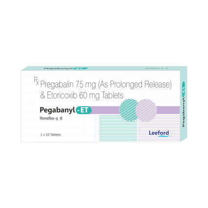 | DESCRIPTION: | Pegabanyl- ET Tablet is a combination of Pregabalin in prolonged release form & Etoricoxib a COX 2 inhibitor used for neuropathic pain associated with diabetic peripheral neuropathy or spinal cord injury, postherpetic neuralgia & fibromyalgia. |