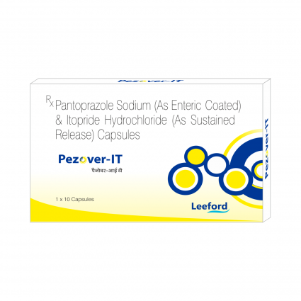| DESCRIPTION: | Pezover-IT Capsules contains Pantoprazole, a PPI that inhibits acid & Itopride, a Prokinetic drug that increases the movement in GI tract. It is indicated in the treatment of gastroesophageal reflux disease (GERD) in Patients who do not respond to monotherapy with PPI's. It is also indicated in Zollinger-Ellison syndrome, gastric and duodenal ulcers. |