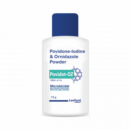 | DESCRIPTION: | Povidot-OZ powder contains Povidone Iodine, an antiseptic agent that kills bacteria and fungus to eradicate skin infections in wide variety of conditions & Ornidazole, an antiprotozoal drug that also acts on specialized group of bacteria not covered by Povidone. They act synergistically to cover wide spectrum of pathogens. It is prescribed for treatment & prevention of infections such as cuts, abrasions, post-surgical procedures dressing, burns, infected wounds & diabetic foot ulcers. |
