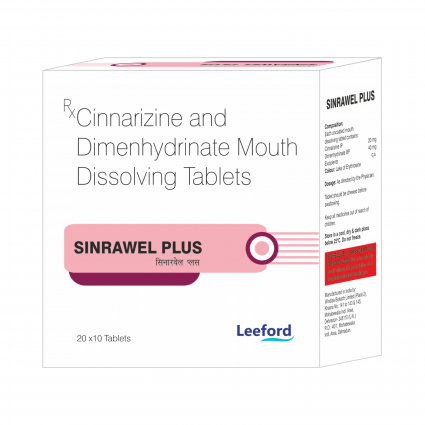 | DESCRIPTION: | Sinrawel Plus tablet contains Cinnarizine & Dimenhydrinate; both are an antihistaminic. It is used for prevention and treatment of motion sickness, nausea and vomiting, vertigo, tinnitus, associated with Meniere's disease and other middle ear disorders. |