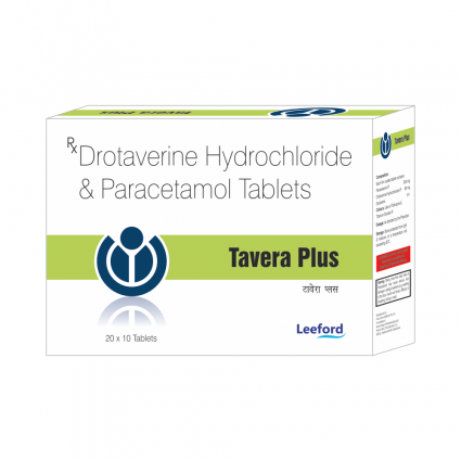| DESCRIPTION: | Tavera Plus tablet contains Drotaverine, an anti-spasmodic and Paracetamol, an analgesic and antipyretic drug. It is indicated in the treatment of stomach pain, Irritable bowel syndrome, menstrual cramps, cervical spasm during labour, chest pain, gallstones pain and pain in renal colic. |