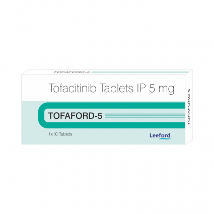 | DESCRIPTION: | Tofaford-5 contains Tofacitinib that is used alone or together with other medicines (eg, DMARDs) to treat moderate to severely active rheumatoid arthritis, active psoriatic arthritis, ulcerative colitis, Ankylosing spondylitis and polyarticular course juvenile idiopathic arthritis (pcJIA) in patients who have taken other medicines (eg, Methotrexate) that did not work well. |