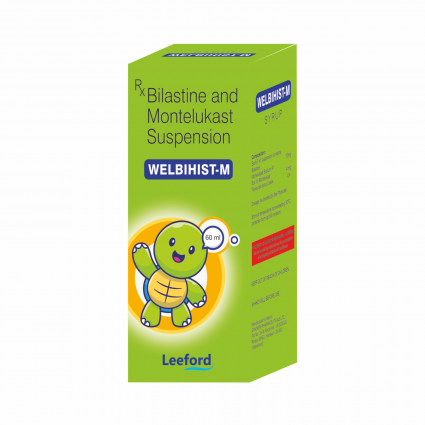 | DESCRIPTION: | Welbihist-M suspension contains Bilastine, an anti-allergic drug that acts by stopping Histamine in the body thus stops allergy & Montelukast, a Leukotriene inhibitor that stops inflammation & swelling and these two salts acts synergistically to provide better results. This combination is prescribed in cases of chronic chest congestion & for better symptomatic relief of seasonal & annual allergies compare to individual drug. |