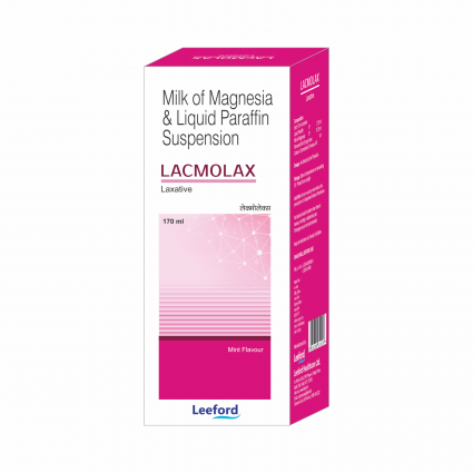 | DESCRIPTION: | Lacmolax suspension treats constipation and relieves acidity. Its Liquid Paraffin softens stool by increasing water content in stool. Milk of Magnesia acts as an antacid and an osmotic laxative. It is used to treat constipation, sour stomach, heartburn, acidity, caused by excessive eating and also for bowel clearance before radioscopy. |