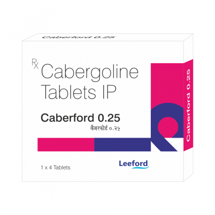 | DESCRIPTION: | Caberford 0.25 tablets contain Cabergoline, a Dopaminergic receptor agonist that exerts direct inhibitory effect on Prolactin secretion. Caberford inhibits excessive secretion of Prolactin and thus improves associated complications of Infertility, menstrual irregularity, breast enlargement. Caberford is indicated in the treatment of abnormal secretion of breast milk, Hyperprolactinemia and its complications. |