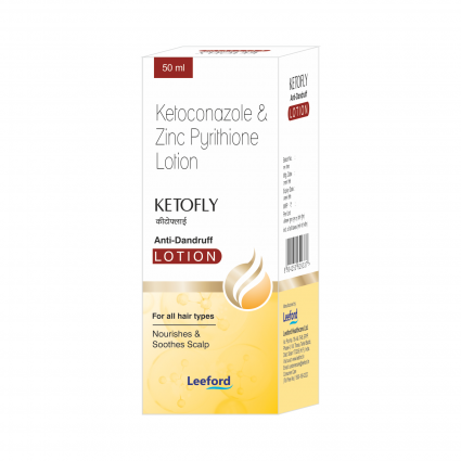 | DESCRIPTION: | Ketofly Lotion contains Ketoconazole, an antifungal that acts by kill the fungus & Zinc Pyrithione, an antifungal & antibacterial drug that stops their growth. It is prescribed to prevent and treat dandruff & seborrhoeic dermatitis of scalp (a fungal infection of scalp). |