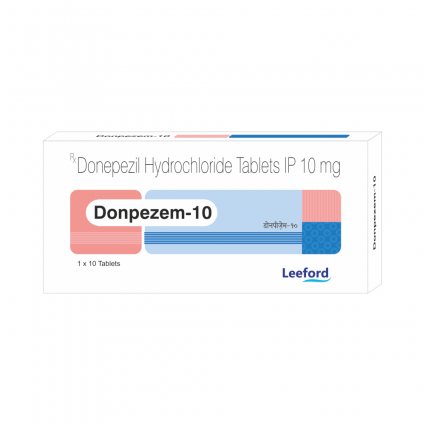| DESCRIPTION: | Donpezem-10 contains Donepezil, an Acetylcholinesterase inhibitor that increases Acetylcholine availability at the synapses and enhances cholinergic transmission to improve cognition and/or behaviour in affected individuals & used in the treatment of dementia in mild, moderate and severe Alzheimer's disease. |