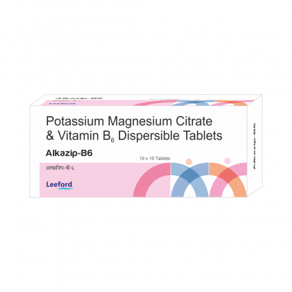 | DESCRIPTION: | Alkazip-B6 is a Urinary Alkalizer that contains Potassium Citrate, Magnesium Citrate & Pyridoxine HCl which helps in the management of Oxalate, Uric acid & Calcium stones. Alkazip-B6 tablets acts by enhancing the excretion of citrate ions via urine leading to reduced formation of stones in kidney. Alkazip-B6 tablets used as an adjunct in UTI cases, relieves burning micturition & helps in urolithiasis. |