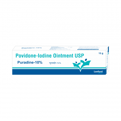 | DESCRIPTION: | Puradine-10% ointment contains Povidone Iodine, an antiseptic agent that kills bacteria and fungus to eradicate skin infections in wide variety of conditions. It is prescribed for treatment or prevention of infection in minor cuts, abrasions, minor surgical procedures and small areas of burns. Also used in treatment of fungal and bacterial skin infections & leg ulcers. |