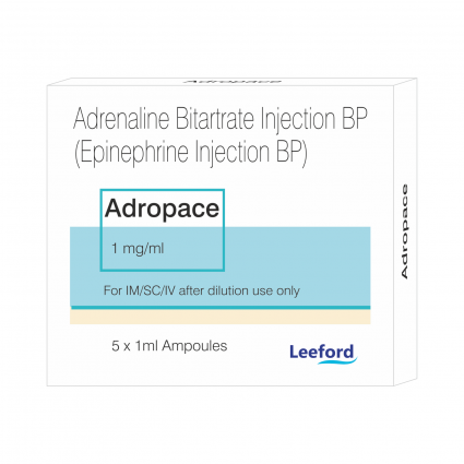 | DESCRIPTION: | Adropace injection contains Adrenaline, also known as epinephrine, a medication used in the treatment of severe allergic reactions (anaphylaxis), cardiac arrest, and asthma attacks. It works by stimulating the heart, increasing blood flow, and relaxing airway muscles thus improving breathing. Adropace injection is administered intramuscularly as it acts rapidly to counter life-threatening symptoms. This emergency treatment is essential for individuals with known allergies or those experiencing acute respiratory distress. |