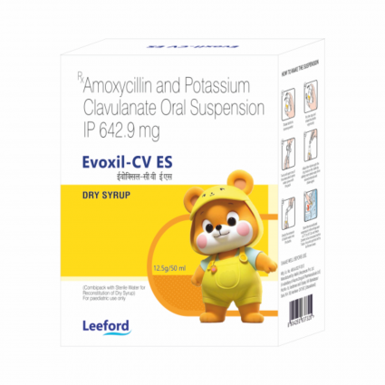 | DESCRIPTION: | Evoxil-CV ES dry syrup is a combination containing Amoxycillin and Potassium Clavulanate & is used in the treatment of bacterial infections. Amoxycillin is a penicillin-type antibiotic that kills bacteria while Potassium Clavulanate inhibits bacterial resistance by tackling beta lactamases enzymes. Evoxil-CV ES is effective against a wide range of infections, including respiratory, ear, and urinary tract infections, improving overall treatment outcomes. |