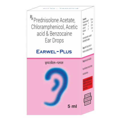 DESCRIPTION: | Earwel-Plus ear drops contains Prednisolone, Chloramphenicol, Acetic Acid, and Benzocaine. This combination combines anti-inflammatory, antibiotic, antiseptic, and pain-relieving properties. Prednisolone reduces inflammation, Chloramphenicol fights bacterial infections, Acetic Acid prevents fungal growth, and Benzocaine provides quick pain relief. Earwel-Plus ear drops helps treat ear infections and associated symptoms effectively. |