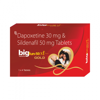 | DESCRIPTION: | Bigfun-50 XT Gold tablets is a combination of Sildenafil and Dapoxetine, two active ingredients that helps address the issue of erectile dysfunction and premature ejaculation in men. Sildenafil enhances blood flow to the penis for improved erections, while Dapoxetine delays ejaculation thus improving sexual performance. This dual-action medication is taken orally before sexual activity or as directed by a healthcare provider. |