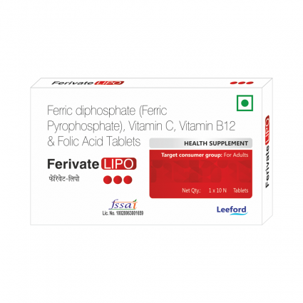 | COMPOSITION: | Liposomal Iron (Ferric Pyrophosphate) 29 mg , Folic acid 125 mcg, Cynocobalamin 0.75 mcg & Vitamin C 50 mg |