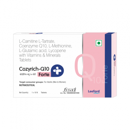 | DESCRIPTION: | Cozyrich Q10 Forte softgels contain a powerful combination of L-Carnitine L-Tartrate, Coenzyme Q10, Omega-3 fatty acids, Lycopene, essential amino acids, trace minerals, and key vitamins including Vitamin D3, Vitamin E, and Vitamin C. This high-strength formula is designed to support mitochondrial energy production, cardiac health, male reproductive function, and antioxidant protection at the cellular level. |