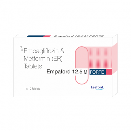 | DESCRIPTION: | EMPAFORD 12.5 M FORTE is a fixed-dose combination of Empagliflozin, a selective SGLT2 inhibitor, and Metformin ER, a biguanide. This dual therapy provides effective glycaemic control in Type 2 Diabetes Mellitus by reducing glucose reabsorption in the kidneys and improving insulin sensitivity. The extended-release form of Metformin ensures better gastrointestinal tolerance and sustained action. |