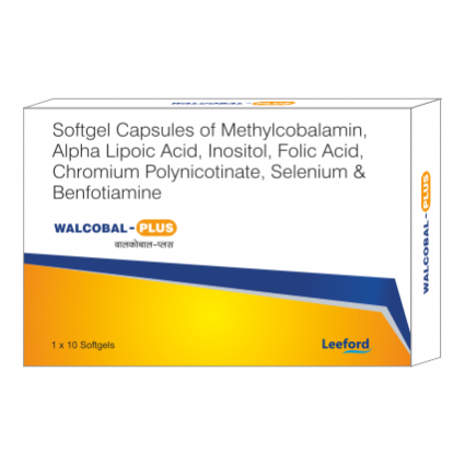 | DESCRIPTION: | Walcobal Plus is a nutraceutical formulation designed to support nerve health and metabolic function. It contains Benfotiamine and Mecobalamin for nerve regeneration, Alpha Lipoic Acid as a potent antioxidant, and essential micronutrients like Inositol, Folic Acid, Chromium, and Selenium to support glucose metabolism and cellular repair. It is used as an adjunct in the management of diabetic neuropathy and related nerve disorders. |