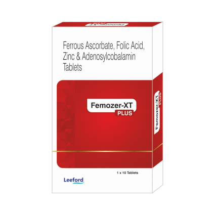 | DESCRIPTION: | Femozer XT Plus contains Ferrous Ascorbate, Adenosylcobalamin, Folic acid & Zinc combination used to treat and prevent iron deficiency anemia, support red blood cell production, and correct deficiencies of folic acid and zinc which are essential for DNA synthesis, cell division, and immune function. This formulation is commonly prescribed during pregnancy, lactation, or periods of increased nutritional needs. It enhances iron absorption and supports overall immune and cellular health. |