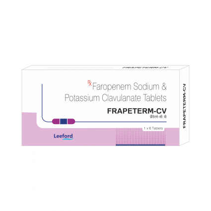 | DESCRIPTION: | FRAPETERM-CV tablets contain Faropenem, a broad-spectrum oral beta-lactam antibiotic from the penem group, and Clavulanic Acid, a beta-lactamase inhibitor. This combination enhances antibacterial efficacy by inhibiting beta-lactamase enzymes, making it effective against a wide range of Gram-positive and Gram-negative bacteria. It is indicated for the treatment of respiratory tract infections, urinary tract infections, skin and soft tissue infections, and other bacterial infections resistant to conventional antibiotics. |