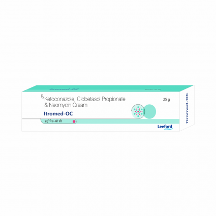 | DESCRIPTION: | Itromed-OC Cream is a combination medication used to treat various fungal and bacterial skin infections associated with inflammation, redness, and itching. Ketoconazole acts as an antifungal, Clobetasol Propionate reduces inflammation and itching, and Neomycin Sulphate helps prevent or control bacterial infections. |